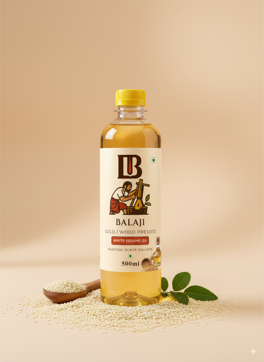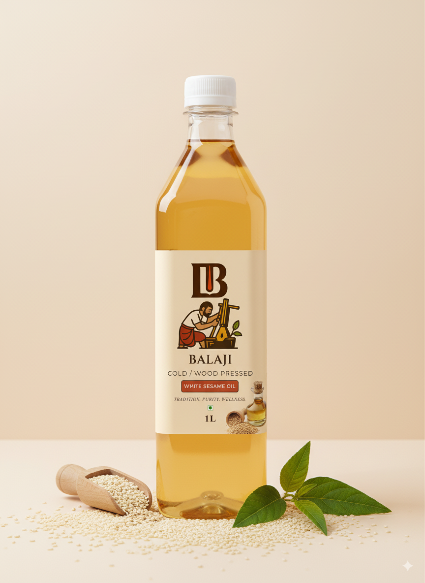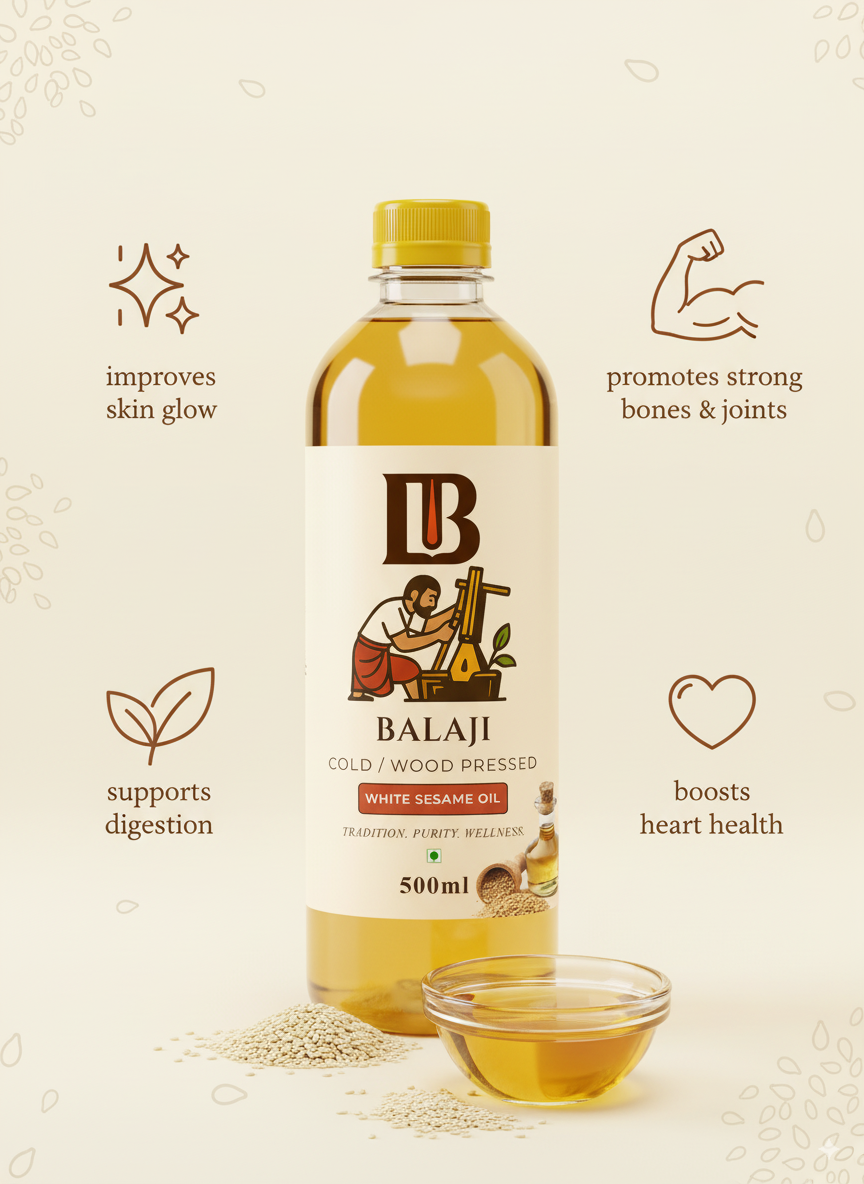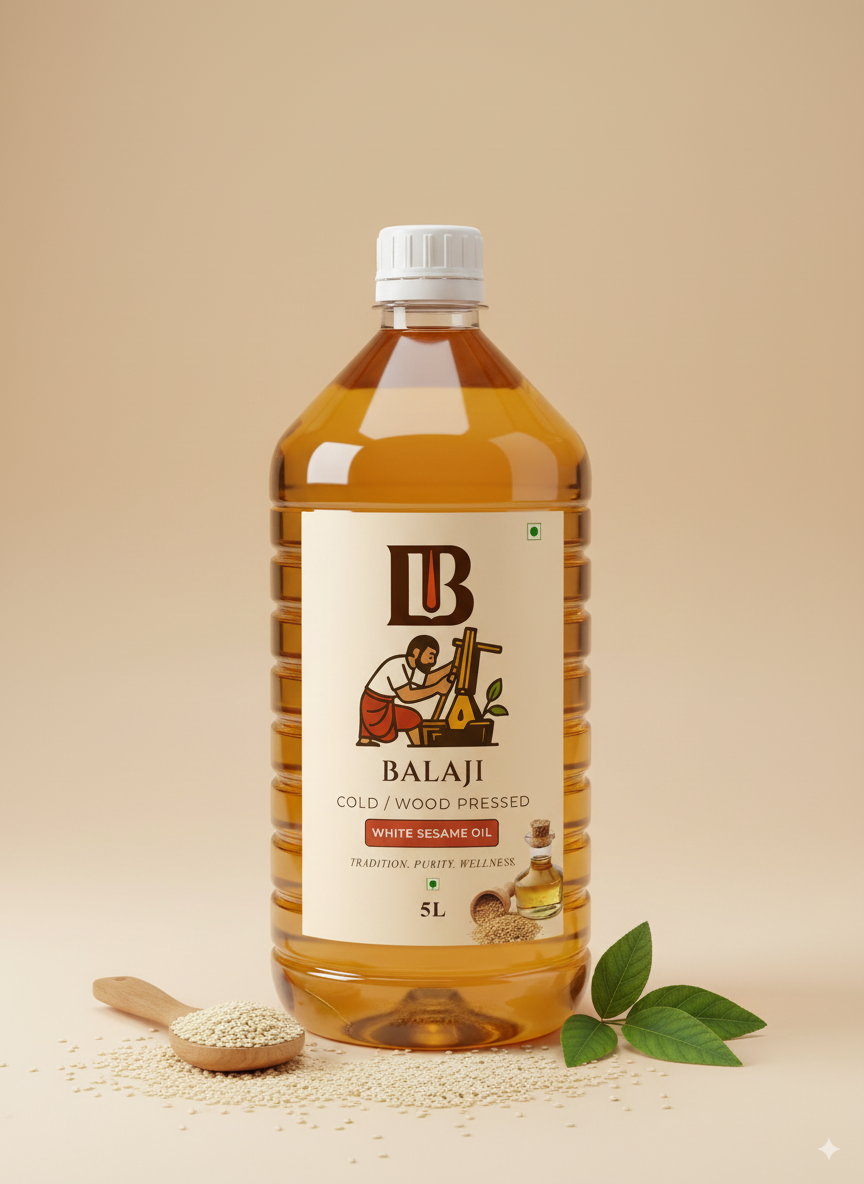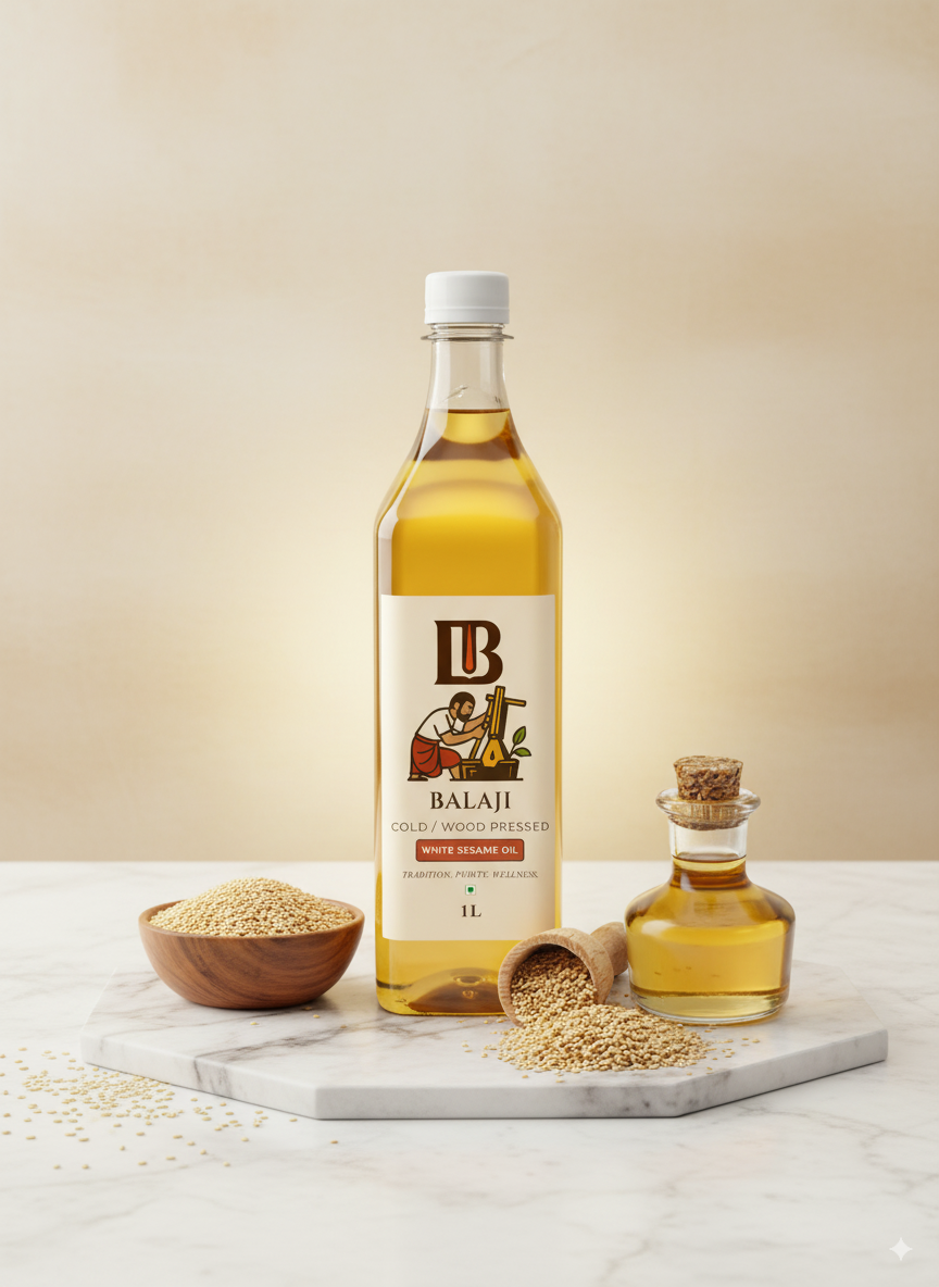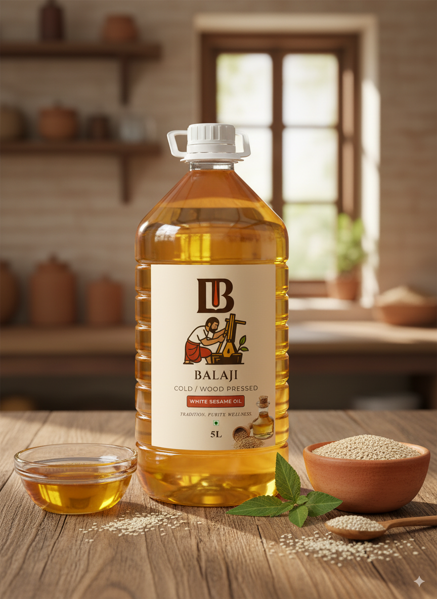 Premium quality white sesame oil extracted through cold pressing method, retaining all natural nutrients and the distinctive nutty flavor of sesame seeds.
