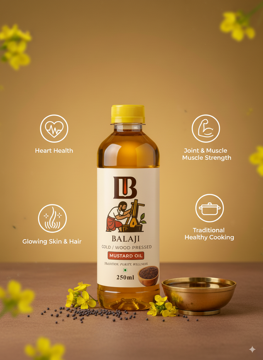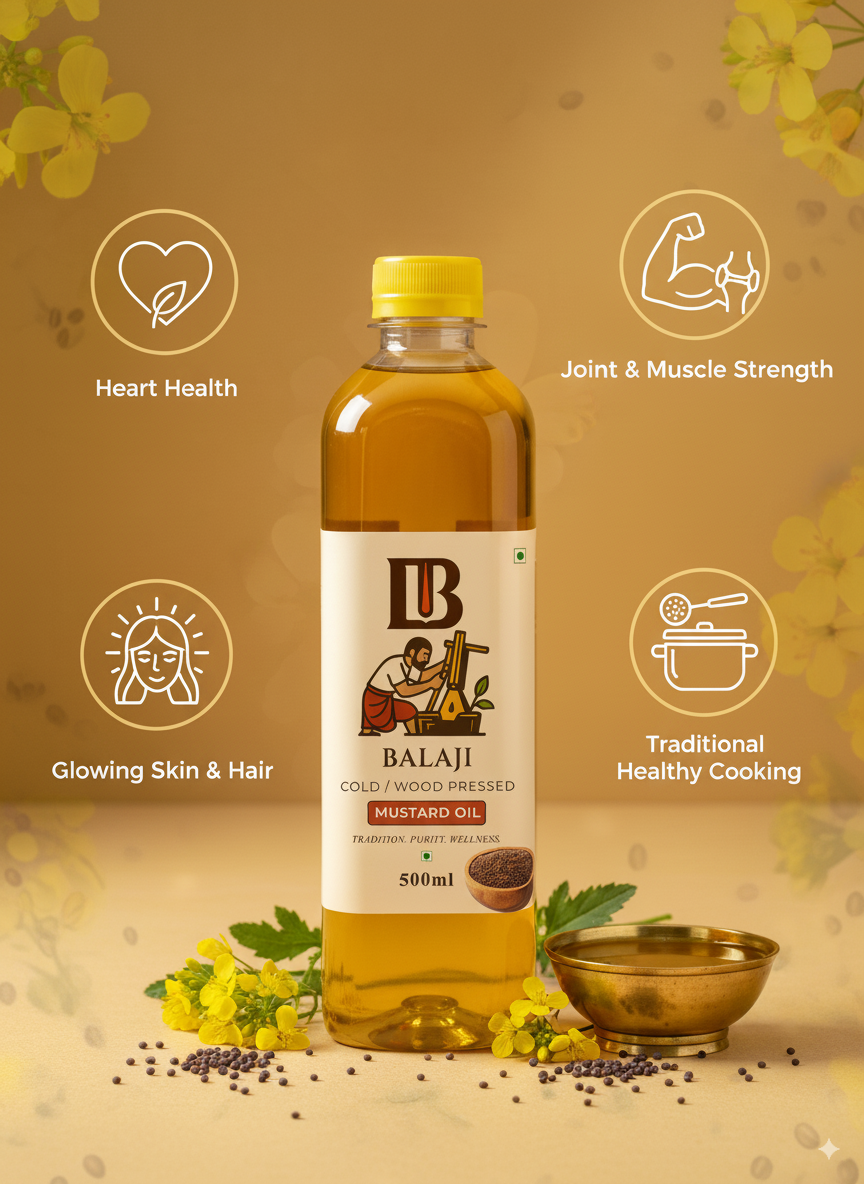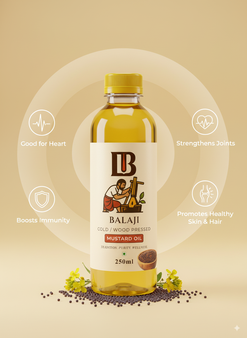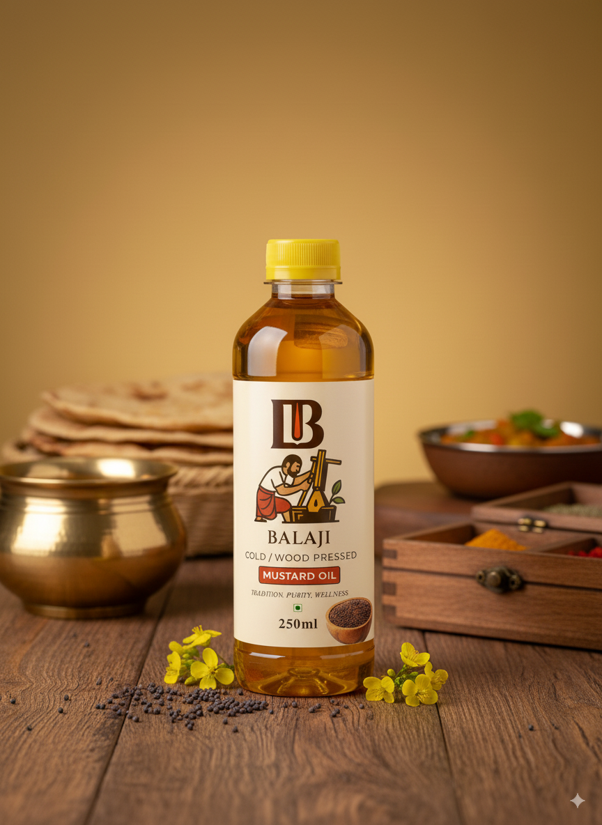 Authentic cold pressed mustard oil (Sarso Tel) made using age-old wood pressing techniques to deliver maximum health benefits and traditional flavor.